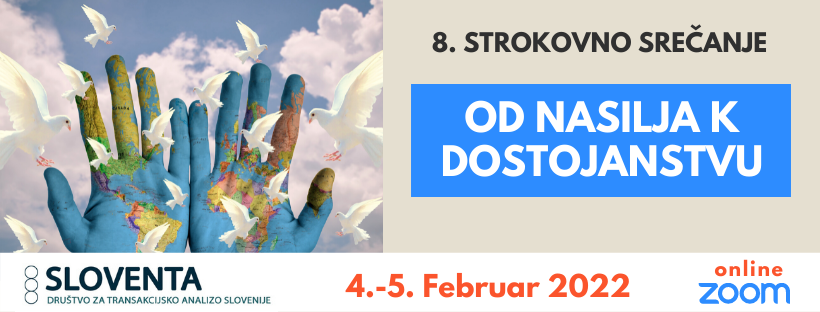 z velikim veseljem vas vabimo na 8. Strokovno srečanje društva za Transakcijsko analizo Slovenije – Sloventa, ki bo potekalo v spletni obliki, od 4. februarja do 5. februarja 2022.