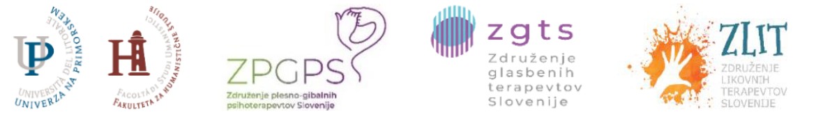 Programski partnerji konference (nacionalna strokovna združenja za področje umetnostnih terapij): ZPGPS, ZGTS in ZLIT